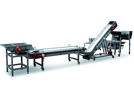 采用AISI 304不锈钢构成,安装在四个轮子上,两个固定轮,两个带刹车带旋转轮。传送带的表面有少许倾斜的侧壁,让操作者可以将不必要的葡萄串移到外面,而不用提起它们,只需拖拉它们即可。