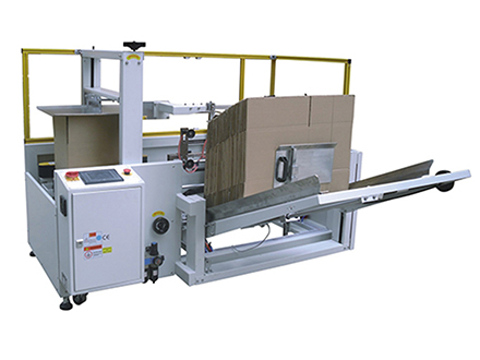 开箱机集自动开箱、自动折合下盖、自动密封纸箱底部,机器采用PLC+人机界面控制,折底不停留,输送中完成折底、封底;同时完成吸箱、成型、折底、封底整个过程;操作方便、维修简单、性能稳定,是自动化规模生产必不可少的流水线设备。